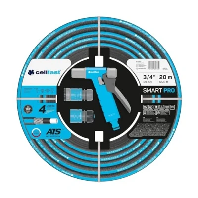 Cellfast Set: SMART PRO ATS irrigation hose for garden use with accessories Accessories include a HYDRON trigger sprayer, a quick stop connector, a quick - pass connector and a universal connector with G3/4" - G1" female thread 4-ply hose for strength and durability | Resistant to kinks and knots that can impede water flow ATS tricot fabric for strength and durability | UV resistant and algae buildup in hose for durability Robust and flexible for easy handling | Suitable for use at temperatures from -20 to +60 °C, Weight: 9.3035074564 Pounds, Manufacturer: Cellfast