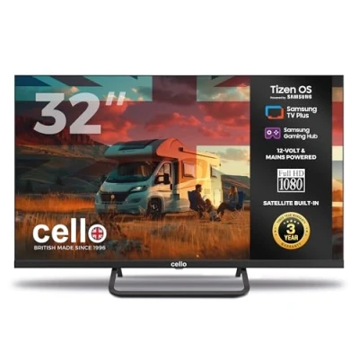 Cello 32" Tizen OS Smart Frameless Led TV, 240V, By Samsung, 3 Years Warranty, Freeview & FreeSat, Gaming Hub, Pitch Perfect Speakers, Netflix, Prime Video, HDMI, Bluetooth, UK Made
