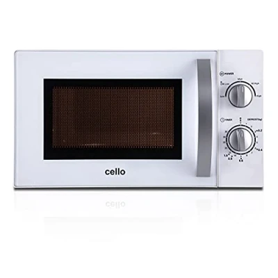 Cello 700W Microwave Oven with 20 Litre Capacity 5 Power levels and defrost function, White, Manual control, Clock kitchen timer One size, MM720CJ9