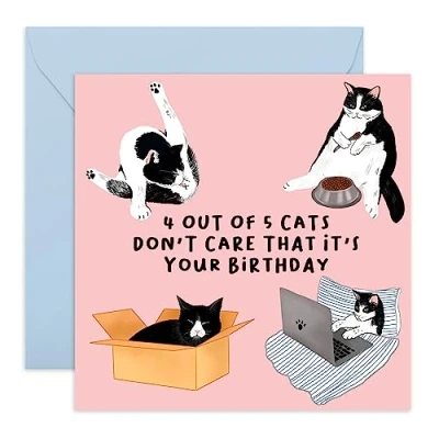 Central 23 Funny Cheeky Birthday Card for Him Her Men Women Wife Husband Sister Brother Daughter Son Mum Dad '4 Out Of 5 Cats' Cat Owner Comes with Fun Stickers