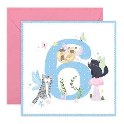 Central 23 Girl Birthday Card Sixth Bday Fairy Cat 6 Years Cute Animals 6th For Kids Six Year Old Gifts Toddler Niece Granddaughter Comes With Fun Stickers