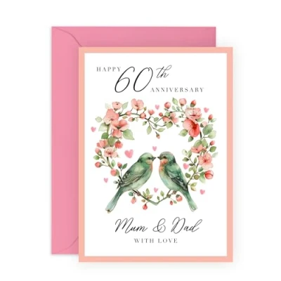 Central 23 Greeting Card '60TH WEDDING Anniversary MUM DAD' Perfect for Celebrating a Diamond with Love and Joy Ideal Marking 60 Years of Togetherness Comes Stickers