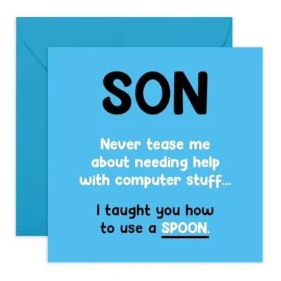 Central 23 Greeting Card 'SON HELP With COMPUTER' Perfect for Celebrating Your Tech Savvy Son's Expertise Ideal Adding a Touch of Humor and Appreciation Son Comes Stickers