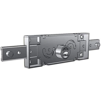 Geared operation, key handling from inside and outside Round cylinder diameter 25 mm; nickel-plated brass with pins Cylinder protrusion from wire box mm. 9.3 Straight bolts with 9.5mm diameter applied pins 2 nickel-plated brass keys supplied, Manufacturer: Prefer Srl