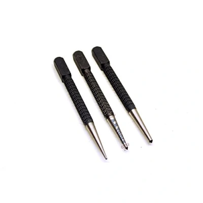 ManoManoToolzone 3pc Nail Punch Set Hand Tools Mechanical Metal Holes Drill Punches Alloy Steel With Knurled Body & Square Striking Head Sizes: 1/16", 3/32", 1/8" Length: 4" /100Mm