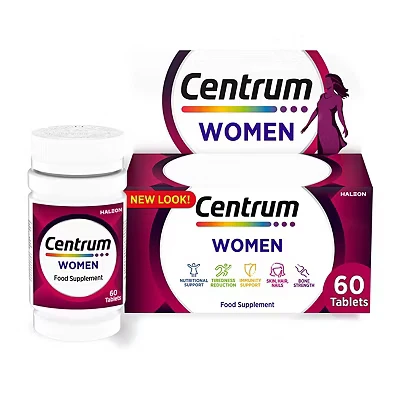 Centrum Women Multivitamin Tablets for Women, 60 Tablets, Vitamins with 23 Essential Nutrients, including Vitamin C, D, and Iron (Packaging Tablet colour may vary slightly)