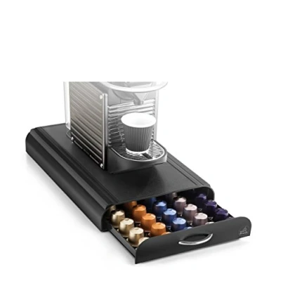CEP Coffee Pod and Capsule Organiser Machine Stand with 1 Drawer, Black, 23.4 x 40.5 6 cm