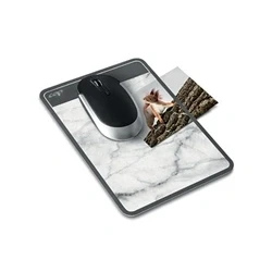 Anti-reflective window to keep a photo in view and personalise the workspace. Compatible with any type of mouse. Sized to easily store in a notebook or diary. Thickness: 2mm. Non-slip soft foam base. Washable on both sides with soap and water.