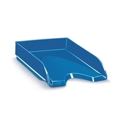 High gloss letter tray. Can hold documents and files up to 240 x 320mm in size. Stackable without risers. Wide, cutaway front opening for easy access. Colour: Blue. Dimensions: W257 x D348 x H66mm.
