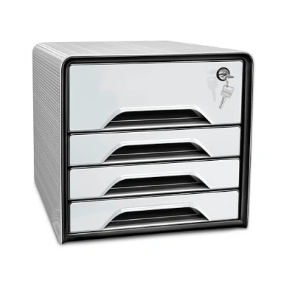 Euroffice4 sliding drawers accept documents and files up to 240 x 320mm. Made from 100% recyclable shock resistant polystyrene. Stackable. Ergonomic handles. 3 x slim drawers and 1 x larger drawer. Larger drawer is lockable for security. Colour: White.
