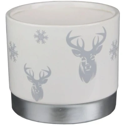 Ceramic Planter With Stag 13cm White Silver Base Christmas Festive Decoration Sweet Holder Candle Indoor Plant Pot