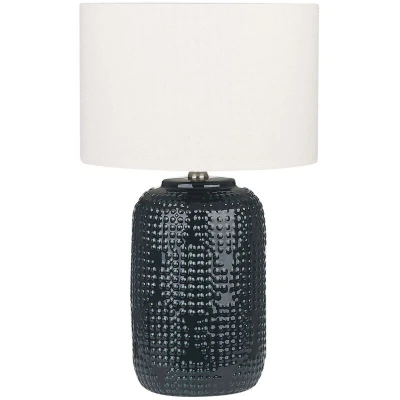 Stylish Table Light with Ornamental Base. Add this marvellous lamp to your interior and let it spruce up the entire look. The decorative base in deep blue colour with a carved pattern is a true eye-catcher that perfectly contrasts with the classic drum-shaped shade. The product provides a delicate diffused light that will create a cosy atmosphere whenever it gets dark outside. Details: Product Type: Table Lamps General Color: Blue, White Shade: Dark Blue Material Type: Ceramic Main Material: Ceramic Additional Material: Linen Base Material: Ceramic Shade Material: Linen Material Composition: 100% Linen Wattage: Max. 60 W Finish: Gloss IP Protection Code: IP 20 Light Bulbs Required: 1 Voltage rating: 230 V (50 Hz) Dimensions: Base Dimensions: 17x17x27 Cord Length: 174 cm Depth: 31 cm Width: 31 cm Height: 49 cm Weight: 2.5 kg Offer Includes: 1 x Table Lamp, Not Included: Light Bulb Key Features: Calming Diffused Light, Features an On/Off Switch, Perfect for Both a Bedroom and a Living