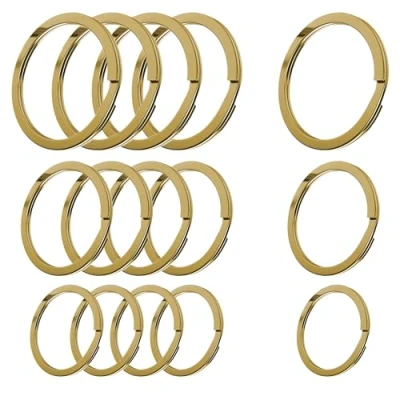 Cerbery Hardened Steel Key Rings Set 5 x 30 mm, 25 20 mm Ring Chain Fob Holder (Gold)