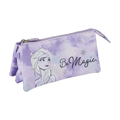 Cerda Disney Frozen Triple Compartment School Pencil Case with Zip Closure for Kids