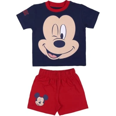 Two-piece children's pajamas summer pajamas with a t-shirt and pants with 160 gram 100% cotton fibers, comfortable and cool for the hottest nights of the year! Mickey summer pajamas T-shirt with Mickey water print and plain red shorts with details of the character's face on one side Mickey children's pajamas cool nights full of adventures to live in the company of Mickey mouse Mickey summer pajamas packaging with license details and hanger to make it easier to store Disney boys' pajamas complete your Mickey Mouse summer outfit with all the elements from the collection!