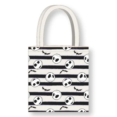 CERDÁ LIFE'S LITTLE MOMENTS Cerdà Nightmare Before Christmas Tote Bag with Long Handles, 36 x 39 cm, Polyester and Cotton, Jack Skellington Design, White