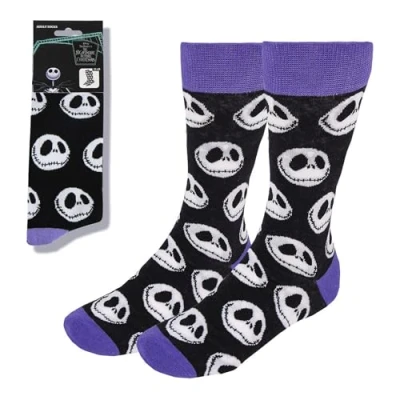 DESIGN INSPIRED BY THE NIGHTMARE BEFORE CHRISTMAS - These The Nightmare Before Christmas socks feature iconic designs of Jack Skellington, Sally and other iconic characters from Tim Burton's movie. Perfect for fans who want to wear the dark and magical Halloween Town style at every step, adding a gothic, playful touch to their everyday look. SOFT ALL DAY COMFORT - The Nightmare Before Christmas socks are made with soft, stretchy materials that provide unmatched comfort. Designed to fit snugly on your feet, they will keep your feet comfortable and cool, ideal for both relaxing at home or wearing outside in style. BREATHABLE MATERIAL - These The Nightmare Before Christmas socks are made with breathable materials that help keep feet dry and cool, even during long hours of wear. Its lightweight and comfortable design allows you to enjoy the magic of Jack Skellington without sacrificing comfort. DURABILITY & PERFECT FIT: Designed to withstand everyday wear, The Nightmare Before Christmas socks retain their shape and elasticity after multiple washes. They perfectly fit different foot sizes, ensuring comfort and style in every step, no matter how many times you wear them. 1. IDEAL GIFT FOR THE NIGHTMARE BEFORE CHRISTMAS FANS - These The Nightmare Before Christmas socks are the perfect gift for any Jack Skellington, Sally or Tim Burton movie fan. With their unique and fun design, they are ideal for gifting on birthdays, Christmas or other special occasions, adding a touch of dark magic and fantasy to daily life.