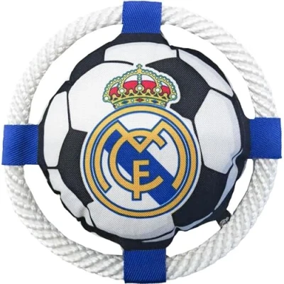 AmazonOfficial Real Madrid Dog Frisbee Rope Dog Frisbee - Great for toss and pick up games, encourages exercise, fun and bonding between owner and pet in any outdoor or home space. Sturdy interactive toy, made to withstand bites and pulls, allows for extended play sessions, helping to keep your dog active, entertained and healthy. Exclusive design with the colours and crest of Real Madrid, perfect for owners and pets who share a passion for football and seek official and quality products. Easy to throw and catch, this rope frisbee is safe for dogs of different sizes and breeds, promoting physical and mental exercise with every throw. Licensed and durable product, excellent gift choice for animal lovers and Real Madrid fans, ideal to take to the park, beach or garden, easy to wash and maintain.