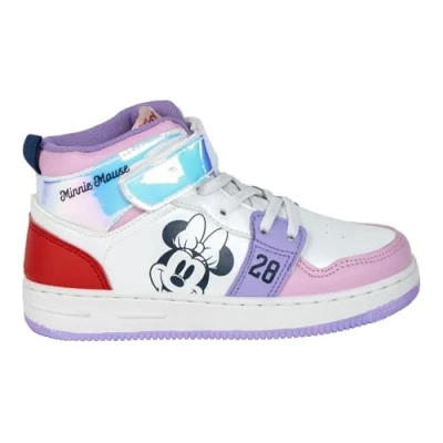 ADORABLE MINNIE MOUSE DESIGN These sneakers are decorated with the legendary Disney character Minnie Mouse and her famous bows. With details in pink and bright tones, these trainers are perfect for little Minnie fans and add a touch of fun and style to their everyday outfits. Non-slip PVC sole for safety: The PVC sole provides excellent traction and stability on any surface. Whether playing in the park, at home or running outdoors, these shoes ensure a secure and reliable grip and protect girls while having fun. SOFT, BREATHABLE COMFORT FOR ALL DAY - These sneakers are designed with a padded, breathable interior, keeping girls' feet cool and comfortable all day long. Soft materials prevent sweat build-up and ensure a comfortable wearing experience even on long days of activity. ADJUSTABLE VELCRO STRAP FOR EASY ON - Equipped with an adjustable Velcro fastener, these sneakers are easy to put on and take off. This closure system provides a tight and secure fit, ideal for younger girls to gain autonomy when dressing and ensure comfort all day long. PERFECT FOR DAILY USE AND ACTIVE ACTIVITIES These trainers are great for daily wear and outdoor activities. With their versatile and durable design, they are the perfect option for girls to enjoy their games, outdoor walks and adventures in complete freedom and style.