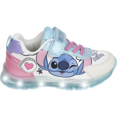 Exclusive Stitch Design with Vibrant Colors: These kids' sneakers are inspired by the adorable Disney character, Stitch. With detailed prints and bright colors, they are perfect for little fans to show their love for this naughty alien on any occasion. INTERACTIVE LED LIGHTS THAT MAKE EVERY MAGICAL STEP - Equipped with LED lights built into the sole that light up when walking, running or jumping, these sneakers add a touch of fun and excitement to every move. Ideal for daytime games or activities in the dark. Lightweight and flexible TPR sole for maximum comfort: With a sole made of TPR material, these shoes offer an ultra-lightweight experience, with excellent cushioning and support for growing feet, ensuring all-day comfort. EASY AND SECURE FIT WITH VELCRO CLOSURE AND ELASTIC LACES: Designed for practicality, these shoes feature adjustable Velcro closure and elastic laces, making it easy to put on and ensure a firm and comfortable fit, ideal for everyday adventures. DURABLE MATERIALS TO STAND UP TO DAILY GAME - Made with high wear resistant materials, these sneakers are designed to withstand outdoor games, running and constant adventures. Plus, their design is easy to clean, keeping them always ready for more action.
