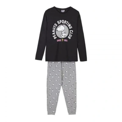 CERDÁ LIFE'S LITTLE MOMENTS Women's Pyjama Femme d'Hiver de Snoopy 100% Coton avec T shirt à Manches Longues et Pantalon Long Licence Officielle Peanuts Pajama Set, Gris, M