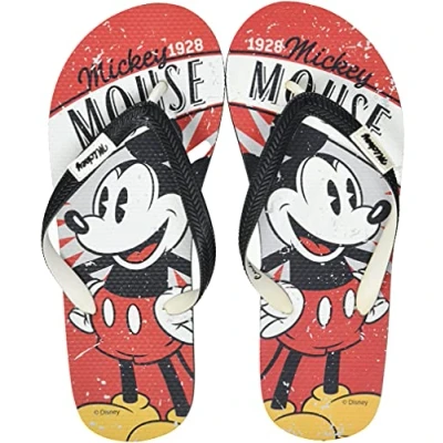 Men's beach flip flops made of rubber to ensure optimum resistance These men's flip flops can be used for the beach, pool or any other casual occasion. Rugged, non-slip EVA sole for better grip on the ground - Double thickness so that walking on flip flops is not uncomfortable Summer flip flops with an original vintage Mickey Mouse design to show your most youthful and casual side Easy to wash and dry quickly | Size 40