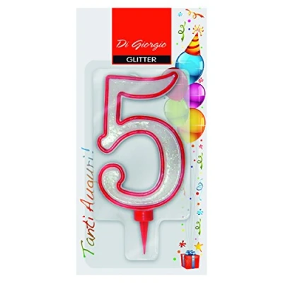 Numerical Giant Birthday Candles A pack of piece With support for food White with Red Edge and glitter, Manufacturer: Cereria Di Giorgio