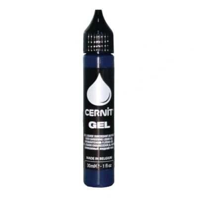CHARACTERISTICS: Cernit gels are cooking clay in liquid form. The gel hardens on cooking to become completely solid. A tip makes it easy to use. USES: this product can be used to add detail to a creation (eyes, rosettes) or to give volume to certain very precise areas. It can be used on all surfaces (plastic, glass, metal, cardboard, etc.). BAKING: bake the gel at between 110°C and 130°C in a conventional oven for a maximum of 30 minutes. Odourless when cooked, it becomes completely hard after baking (do not use a microwave oven). CAPACITY: 30ml. FABRICATION: all Cernit gels are made in Belgium, near Liège.