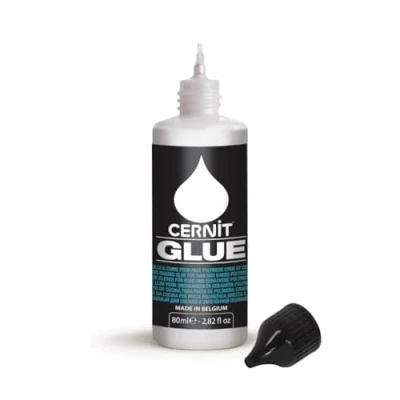 FEATURES: this strong glue has been specially designed for polymer clay. The precision tip enables small details to be glued neatly. Transparent after application. USES: Cernit glue can be used to glue raw or baked dough, or a mixture of both. It can also be used to bond modelling (polymer) clay to other materials, whether porous or not. BAKING: baking mandatory. Like Cernit dough, its sticking power only works with oven heat at 130°C maximum. CAPACITY: 80ml. FABRICATION: Cernit glue is manufactured in Belgium, near Liège.
