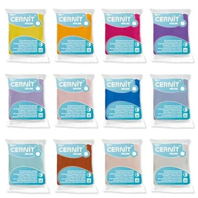 CERNIT Pack of 12 Blocks Polymer Paste Ceramic Effect (semi Opaque) Opaline Modelling Clay Different Colours 56 g CE0880012K01C