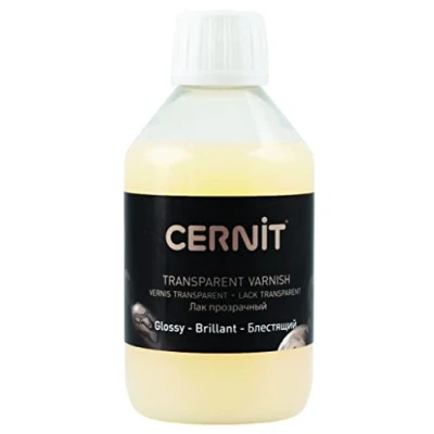 CHARACTERISTICS: water-based, Cernit varnishes are completely transparent when dry. They are resistant to water and to minor daily aggressions (scratches, etc.). MULTI-SUPPORTS: compatible with all types of surfaces such as plastic, metal, wood, terracotta, cardboard, ceramics, polystyrene etc... USES: applied with a brush, the varnish not only protects the object, but also gives it a shiny effect. Air-dries quickly (approx. 15 minutes). CAPACITY: 250ml. FABRICATION: All Cernit varnishes are made in Belgium, near Liège.