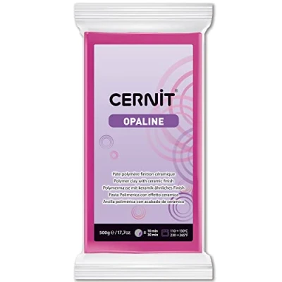 OPALINE: polymer modelling clay, semi-opaque after firing. It gives relief and depth to your creations and is ideal for ultra-realistic designs. BAKING THE PASTRY: once worked, bake the dough in a conventional oven at between 110°C and 130°C for a maximum of 30 minutes. Odourless when cooked. Does not crack. Do not use a microwave oven. CHARACTERISTICS: Cernit paste does not dry. It is therefore infinitely malleable. Solid, it remains flexible and workable after baking. It does not rub off on hands or tools. HOW TO USE: Work the dough on a clean surface. Knead it to make it supple, then begin your creation. It can be sculpted, molded or used with other materials. Perfect for jewelry and reproductions. FABRICATION: all Cernit cooking clay is made in Belgium, near Liège. Composition VÉGAN.