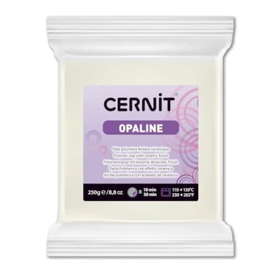 OPALINE: polymer modelling clay, semi-opaque after firing. It gives relief and depth to your creations and is ideal for ultra-realistic designs. BAKING THE PASTRY: once worked, bake the dough in a conventional oven at between 110°C and 130°C for a maximum of 30 minutes. Odourless when cooked. Does not crack. Do not use a microwave oven. CHARACTERISTICS: Cernit paste does not dry. It is therefore infinitely malleable. Solid, it remains flexible and workable after baking. It does not rub off on hands or tools. HOW TO USE: Work the dough on a clean surface. Knead it to make it supple, then begin your creation. It can be sculpted, molded or used with other materials. Perfect for jewelry and reproductions. FABRICATION: all Cernit cooking clay is made in Belgium, near Liège. Composition VÉGAN.