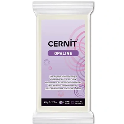 OPALINE: polymer modelling clay, semi-opaque after firing. It gives relief and depth to your creations and is ideal for ultra-realistic designs. BAKING THE PASTRY: once worked, bake the dough in a conventional oven at between 110°C and 130°C for a maximum of 30 minutes. Odourless when cooked. Does not crack. Do not use a microwave oven. CHARACTERISTICS: Cernit paste does not dry. It is therefore infinitely malleable. Solid, it remains flexible and workable after baking. It does not rub off on hands or tools. HOW TO USE: Work the dough on a clean surface. Knead it to make it supple, then begin your creation. It can be sculpted, molded or used with other materials. Perfect for jewelry and reproductions. FABRICATION: all Cernit cooking clay is made in Belgium, near Liège. Composition VÉGAN.