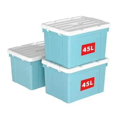 Cetomo 45L*3 Storage Boxes, Carry Plastic Box with Lids, Organizing Container Handle and Secure Latching Buckles, Stackable, Nestable, Tote Bin for Home Office Clothes, 45L 3Pack, Blue
