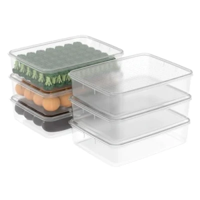 Cetomo 5L*6 Food Storage Container, Fridge Organizer with Lid, Plastic Refrigerator Organizers for Pantry and Fruits, BPA free, Freezer Safe, Microwave Durable, Grade, Clear, 5L 6 Pack