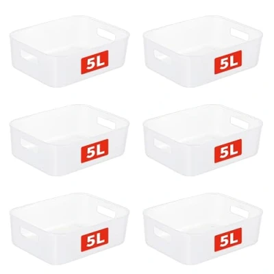 Cetomo 5L*6 Storage Basket, Plastic Open Box, Containers for Shelves, Organizers with Handles Office, Countertops, Cabinets, PP, BPA Free, Frosted Transparent, 5L 6 Pack (28.5 * 22 9cm)