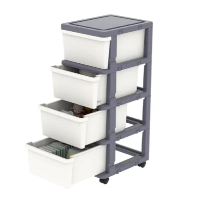 Cetomo Plastic Storage Drawers Unit, Drawer on Locking Wheels, Tower with Interlocking Hooks for Home Office Closet Bedroom Dorm, Detachable, Free Combination, White and Gray, 4