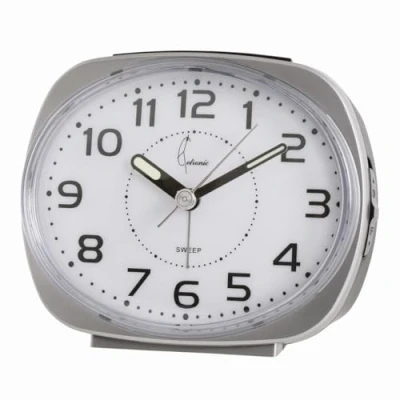 Cetronic Silver Clock with Progressive beep, Silent Movement, Luminous Hands, Snooze Function, Flashing Light Alarm, Petit
