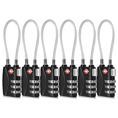 CFMOUR TSA Locks 1, 2, 3, 4, 5, 6 Pack 3 Dial Security Cable Travel Combination Padlock for Suitcase Luggage Case Bag Code Lock Black (Pack of 6)