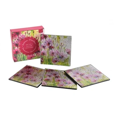 CGB Giftware Set of 4 Glass Floral Coasters in Gift Box Table Top Barware Tea Coffee Wine Summer Meadow Range HD525