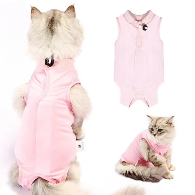 【Adjustable Elastic Neck Collar】This cat recovery suit comes with an elastic neckline which makes it easier for cats to wear through their heads. The elastic material makes the cat feel more comfortable and does not restrict its movement. Cats are not able to get rid of it easily from the head hole. 【EASY TO WEAR】The cat recovery clothes come with an extra long and extra wide Velcro fastener that allows for convenient size adjustment. The elastic neck band at the top is easy to wear. Precise design is applied to the limbs of the clothing, which does not easily fall off and is more durable. 【Better than Traditional Cones】 Our cat recovery suit is a comfortable and effective alternative to the traditional cat cone. With full-body coverage and breathable fabric, cat recovery suit for spay allows your cat to move freely and reduces anxiety during post-operative care. Plus, it's washable and reusable, making it a cost-effective and eco-friendly option. 【Versatile and Multi-functional】 Cat surgical recovery suit female is a must-have for any cat owner. It can be used for after surgery, spaying, skin diseases, weaning, overgrooming, abdominal wounds. Cat spay recovery suit female is designed to provide optimal support and comfort, making it a versatile solution for a variety of situations. 【Size】 S: weight 1-2kg, length 23cm, M: weight 2-4kg, length 28cm, L: weight 4-7kg, length 36cm. Please refer to the size in the picture and make sure you choose the right size before purchasing. Please allow for a 1-3 cm error due to manual measurement. 【Ideal for Cat Recovery Care】 Our cat recovery suit is designed to prevent cats from licking or scratching their surgical wounds, helping to speed up the healing process and reduce the risk of infection. Cat body suit post surgery can save you money on vet bills and provide peace of mind knowing that your cat is protected. 【Premium Breathable Fabric】 Our cat onesie for cats after surgery is made from high-quality, breathable materials that are gentle on your cat's skin and won't cause discomfort or irritation. Your cat can wear spay suit for female cat comfortably and for extended periods, without feeling stuffy or overheated. 【Easy to clean & dry】Machine washable on cold (below 30 degrees Celsius 86 degrees Fahrenheit) and ironable and air dry (NOT DRYER SAFE)