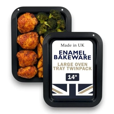 Premium Vitreous Enamel: Crafted with high-quality vitreous enamel, these trays ensure durability, resist staining, and provide exceptional heat distribution for consistent cooking results. Generous Size: Measuring 36cm x 28.5cm, these trays offer ample space to accommodate larger meals, making them perfect for roasting meats, baking casseroles, and more. Slim Profile: With a low-profile height of just 2cm, these trays easily fit into your oven while still providing ample cooking space. Even Heat Distribution: The vitreous enamel coating on these trays promotes even heat distribution, preventing hot spots and ensuring your dishes cook uniformly for delicious results. Proudly Made in the UK: These trays are manufactured in the United Kingdom, reflecting a commitment to quality craftsmanship and the tradition of British culinary excellence.