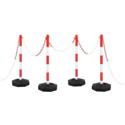 VidaXLThis chain post set is designed as an economical but effective means to restrict certain areas. It is suitable for car parks, warehouses, public spaces, and private roads, etc. The 10 m plastic chain can be easily attached to the traffic posts to create a restricted area. The set is light in weight, thus very portable. For added stability, the included base can be filled with water or sand. The bright colours make the traffic post set highly visible even in the low light.