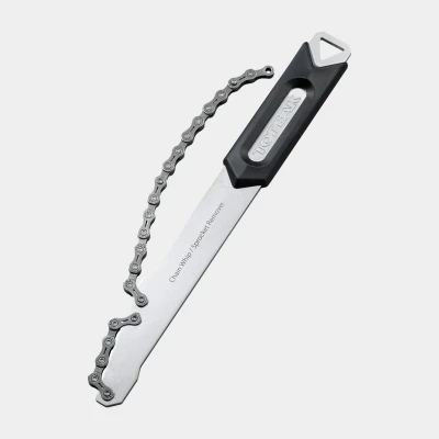 The Chain Whip / Sprocket Remover is made from hardened steel. The Chain Whip is used for rear cassette lockring and freewheel installation and removal. It comes with a long padded handle made from engineering grade polymer for better leverage and comfortable use. Tool material: Hardened steel Handle material: Engineering grade polymer Size: 29 x 3.5 x 1.5 cm / 11.4” x 1.4” x 0.6” Weight: 305 g / 10.74 oz