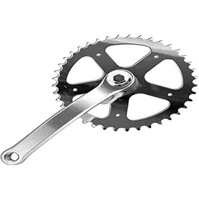 Crank length: 165 mm. Bolt circle: 130 mm. Colour: silver. Chain ring: 40 teeth. For 1/2 x 1/8 inch chains.