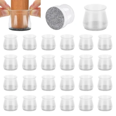 Chair Leg Caps, Pack of 36 Protective Caps for Legs with Felt Floor Protectors Chairs Silicone Transparent Round Protection Floors
