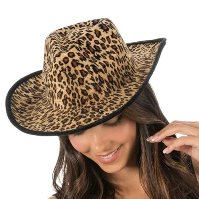 Leopard print cowboy hat: a real eye-catcher for any festival, theme party or your everyday outfit Stylish headwear: available in one size for adults, this hat will make for an extravagant appearance on men and women Animal print: comfortable to wear, even at longer events or stage performances Must-have for fashion enthusiasts: for fancy dress, streetwear or as a statement piece for fashion fans ENJOY PARTY Mood Whether as a cowboy, show star or Wild West Queen, this hat will add cheer to the game, Manufacturer: CHAKS