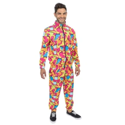 90s Flashback in color: this eye-catching jogging suit brings back the look of the 90s - loud, wild and ready for any party or festival stage Two-piece set for retro fans: jacket and trousers in size XL ensure authentic 90s vibes during events or photo shoots with their colourful complete look Practical and stylish: With zip on the jacket and elastic cuffs, the look remains casual and is comfortable even when moving Colourful mix of patterns: bright colors meet geometric shapes and exude pure joy of life Nostalgia to put on: Inspired by the style of the 90s, this tracksuit combines striking design with a relaxed posture for unforgettable performances, Manufacturer: CHAKS