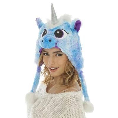 Magical unicorn hat in bright blue with a large glittering horn, cute eyes and ears and a beautifully designed snout Playful tassel on the sides: for playing, swinging or simply as an eye-catching detail for your look The headpiece is available in one size for adults and is suitable for both men and women The soft material ensures a comfortable fit, even at long parties For carnival, theme parties, street carnival or other fancy dress occasions, Manufacturer: Chaks